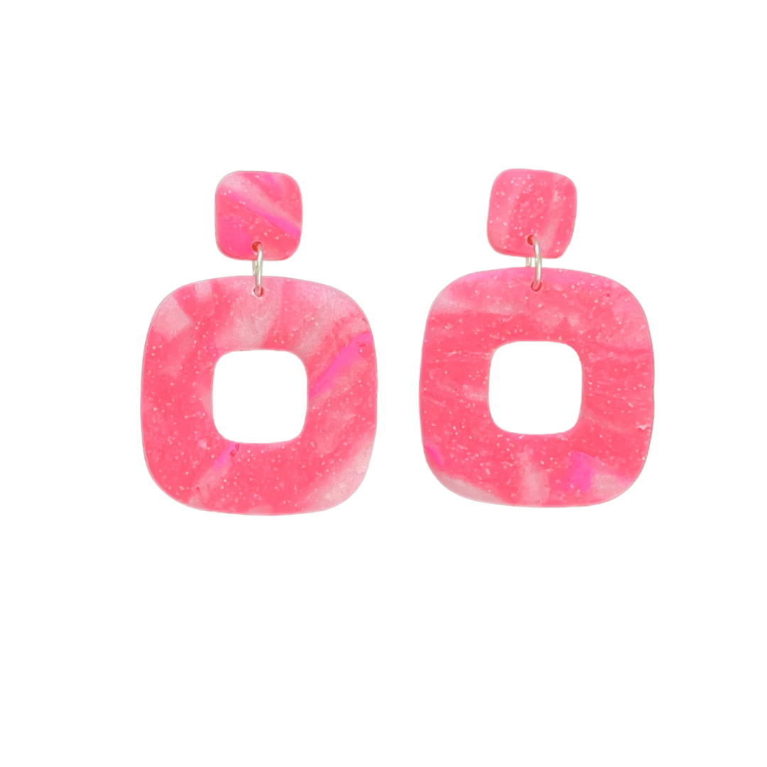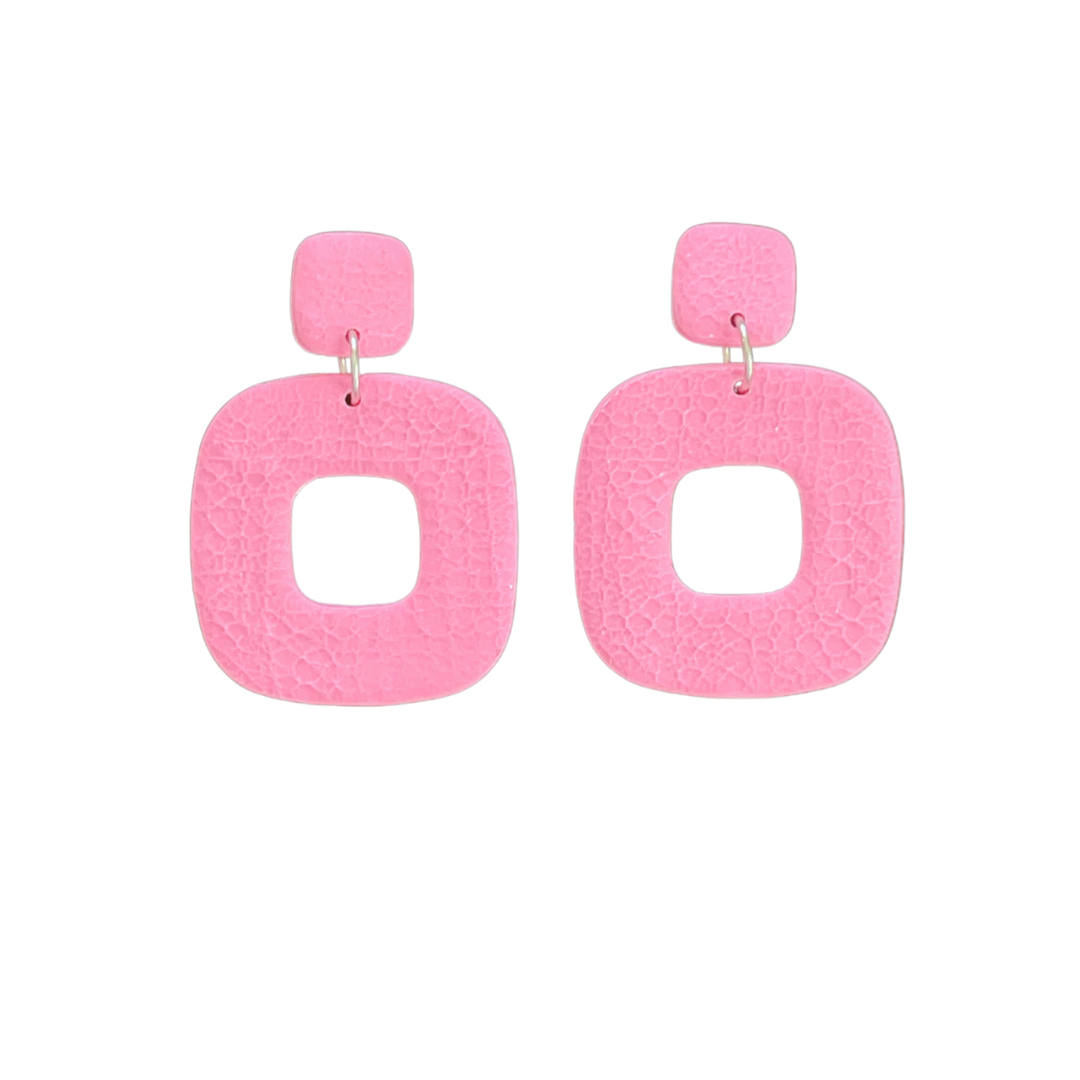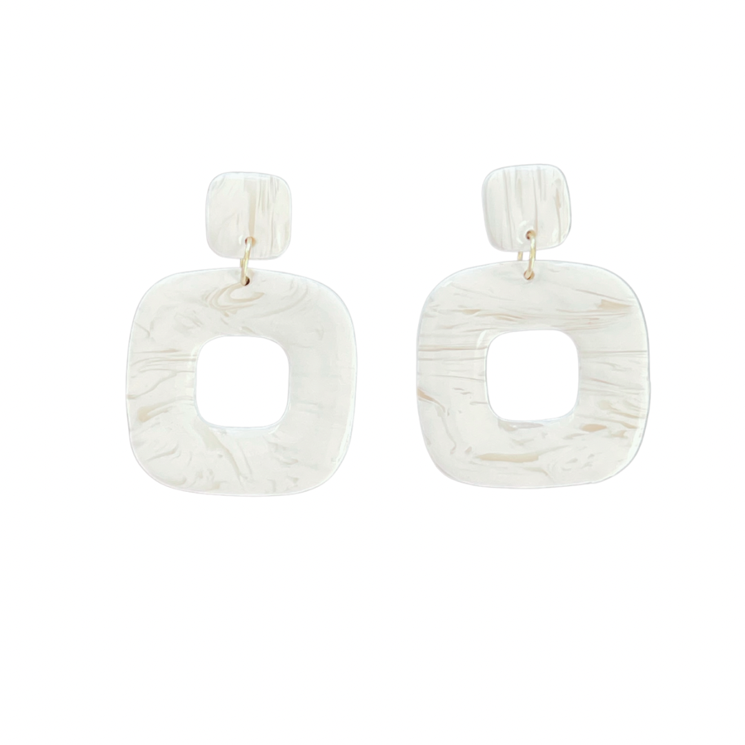 The perfect light weight statement earring. Hand-stamped polymer clay square charms suspended from square polymer clay studs affixed to surgical steel posts.
